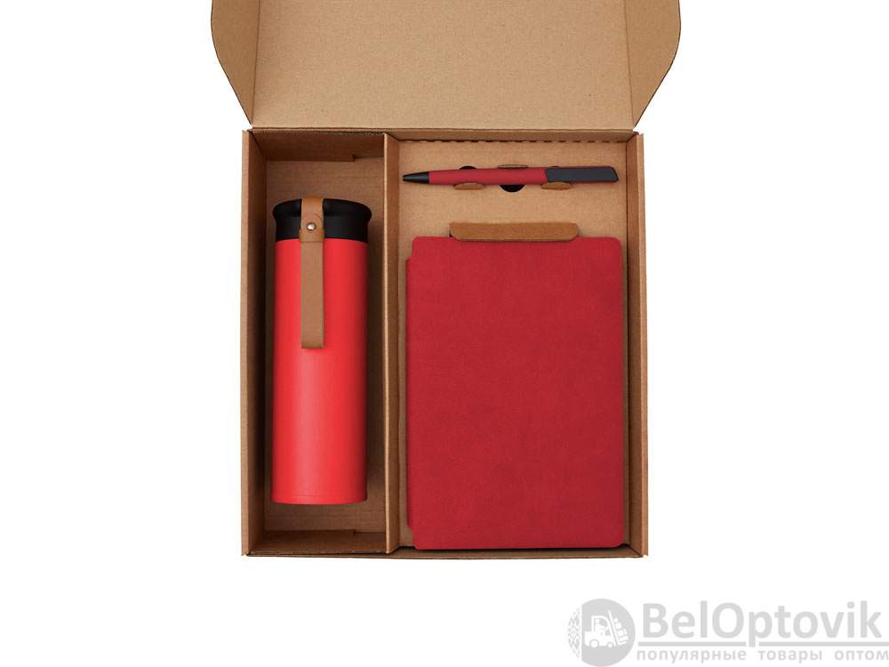 - Материал товара: термос - нержавеющая сталь, soft-touch, блокнот - термо PU с зернистой структурой, ручка - пластик с покрытием soft-touch, стикеры - смола
