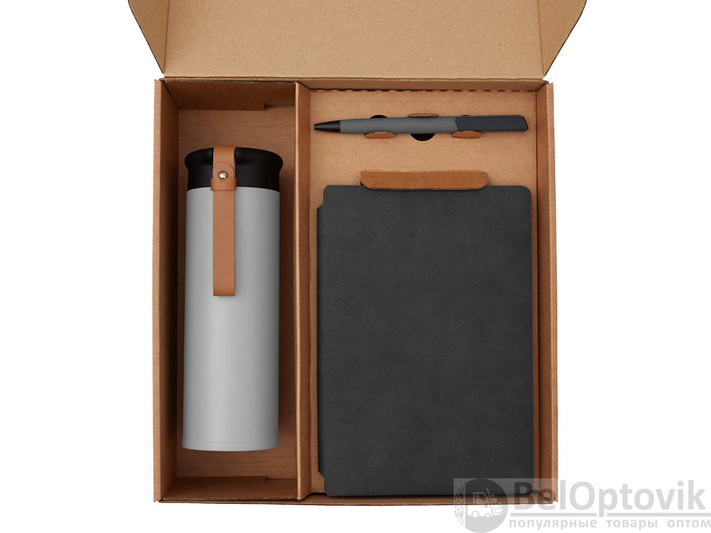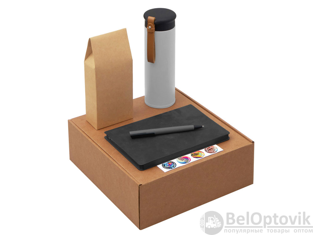 - Материал товара: термос - нержавеющая сталь, soft-touch, блокнот - термо PU с зернистой структурой, ручка - пластик с покрытием soft-touch, стикеры - смола