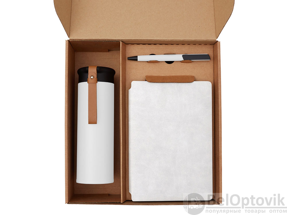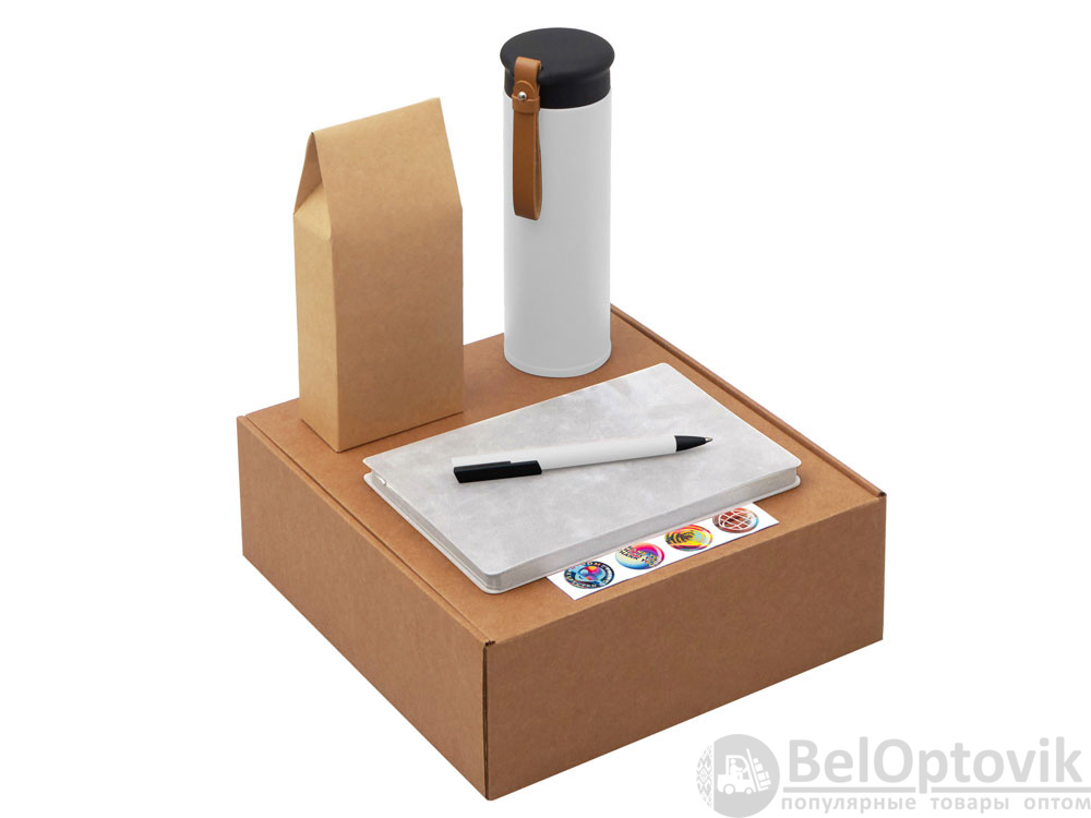Набор «Draftea» с блокнотом, ручкой, термосом и чаем, Цвет белый, коричневый