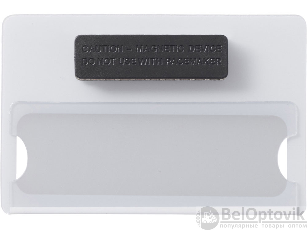Прочный магнитный бейдж, изготовленный из пластика. Магнитное крепление позволяет быстро прикрепить и снять бейдж без лишних усилий и проколов на ткани.