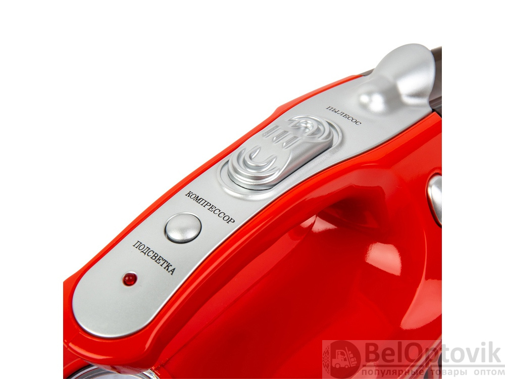 ●Светодиодная подсветка рабочей зоны обеспечит комфортную уборку ●В пылесос встроен компрессор для шин, в комплект входит шланг для компрессора