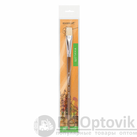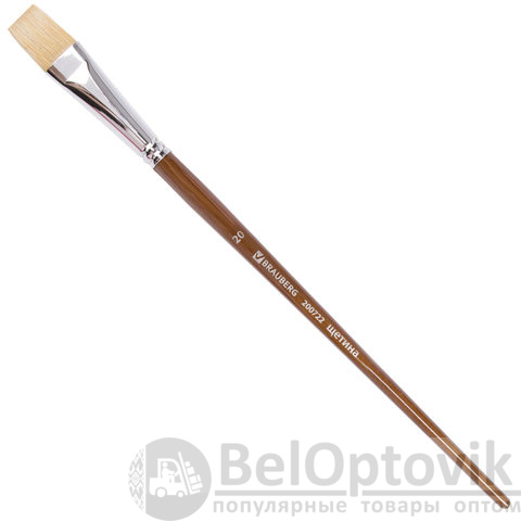 Кисть художественная профессиональная BRAUBERG ART CLASSIC, щетина, плоская, № 20, длинная ручка, 200722