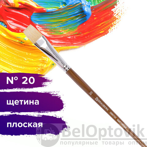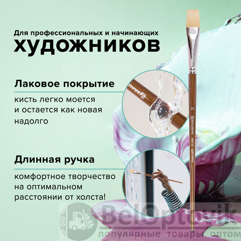 Художественная профессиональная кисть BRAUBERG ART "CLASSIC" № 20 предназначена для работ густыми красками: гуашь, акрил, масло, темпера.