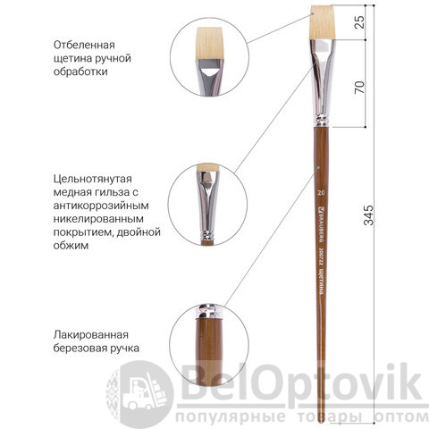 Форма пучка – плоская. Ширина ворса у основания кисти – 20 мм.