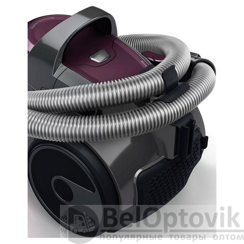 Также предусмотрен автоматический сбор сетевого шнура длиной 6 метров, а сам корпус имеет прорезиненные ножки для устойчивости и защиты напольных покрытий. Управление осуществляется через поворотный регулятор мощности на корпусе, что делает процесс уборки гибким и адаптированным под разные поверхности: ковры, паркет, ламинат, плитка.