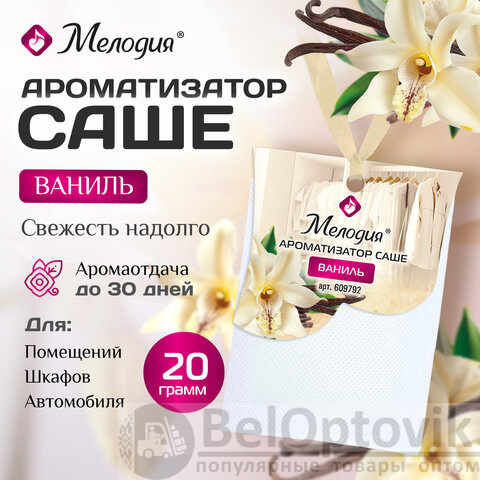 Ароматизатор саше для помещений, шкафов, комодов, автомобиля 20 г МЕЛОДИЯ "Ваниль", 609792