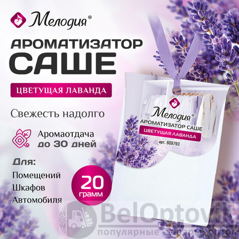 Ароматизатор саше для помещений, шкафов, комодов, автомобиля 20 г МЕЛОДИЯ "Цветущая лаванда", 609793