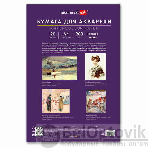 Бумага для акварели BRAUBERG ART "CLASSIC" содержит набор листов, специально предназначенных для рисования всеми видами водорастворимых красок. Подходит как для профессионалов, так и для любителей.