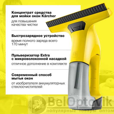Стеклоочиститель аккумуляторный KARCHER WV 6 Plus, время работы 100 мин, желтый, 1.633-510.0
