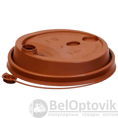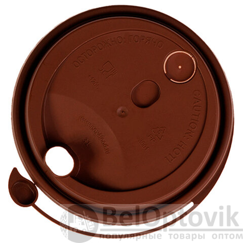 Крышка с питейником для бумажного стакана, ДИАМЕТР 90 мм, матовая коричневая, ПП, ВЗЛП, 3001М/Кор