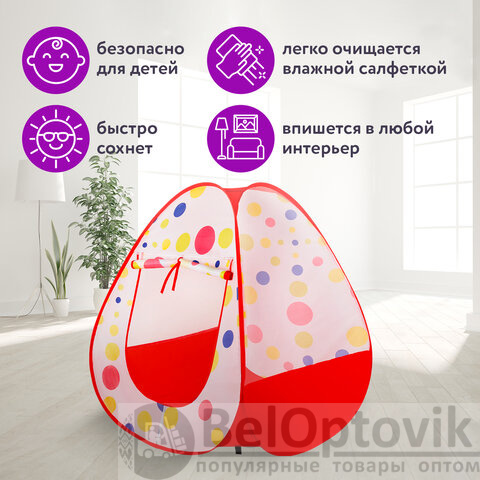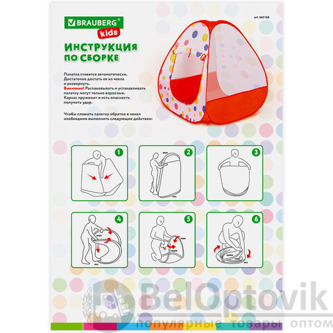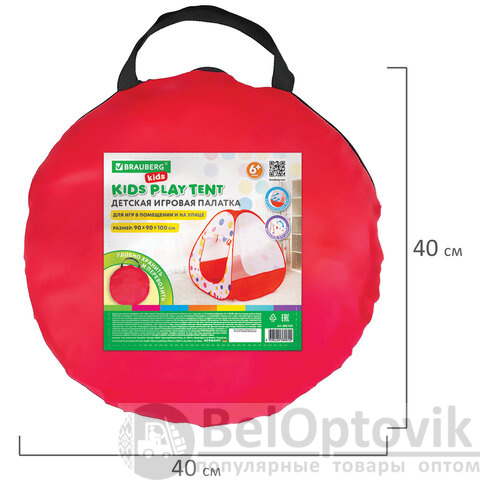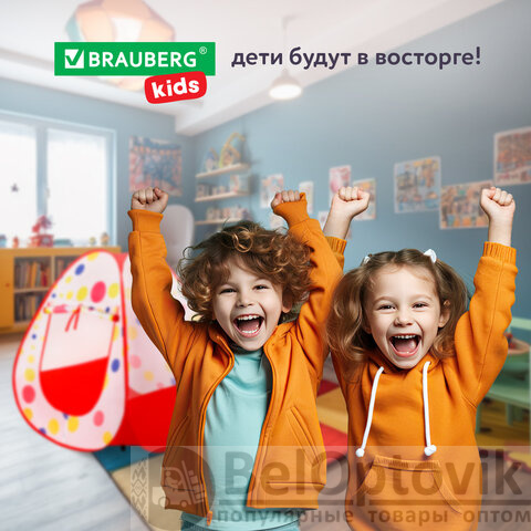 Детская игровая палатка BRAUBERG KIDS предоставляет детям идеальное индивидуальное пространство для игр, движения, веселья с друзьями, чтения или сна. Палатка подходит для использования в помещении или на улице.
