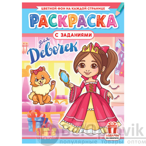 Раскраска с заданиями "Для мальчиков и девочек" с цветным фоном, А4, 16 стр., 21х29 см, АССОРТИ, ЛиС