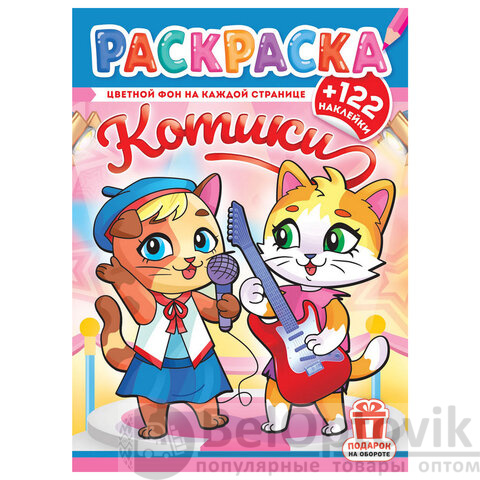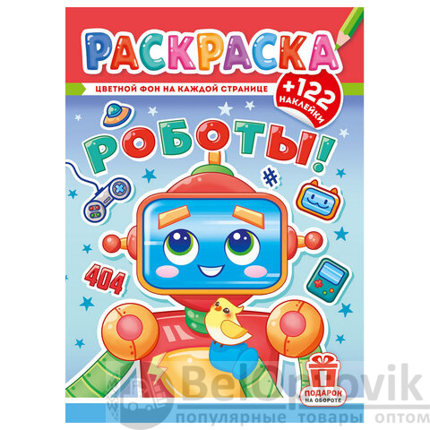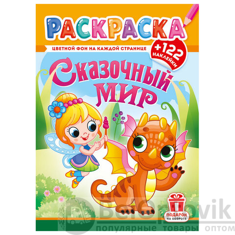 Откройте для ребёнка новый уровень творчества с этой необычной раскраской, где каждая страница уже имеет красочный фон, а в подарок идёт целых 122 ярких наклейки!