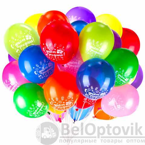 Высококачественные шары классической формы с рисунком "С Днем Рождения". Изготовлены из натурального латекса, обеспечивающего прочность изделия при аккуратном использовании. Стандартный размер - 30 см. 50 шаров 10 разнообразных насыщенных цветов украсят любой интерьер.