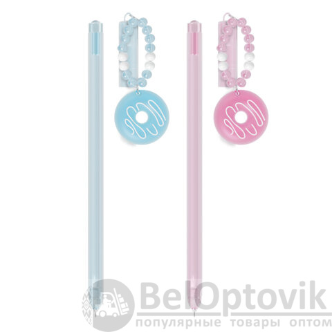 Надежный круглый корпус ручки выполнен в двух дизайнах ассорти розового и голубого цвета. Колпачок ручки дополнен подвеской с аппетитным пончиком – дизайн, который станет украшением любого рабочего пространства.