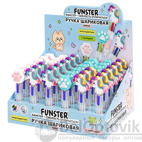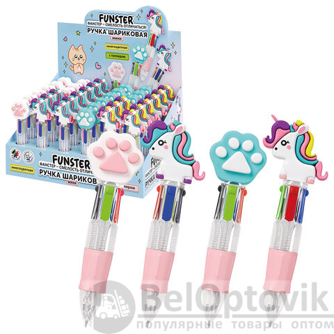 Ручка многоцветная FUNSTER "MIX" – одна ручка вместо четырёх сразу! Практичное решение, которое сэкономит время письма и место в пенале! Очаровательный спутник, с которым процесс письма станет еще интереснее. Поднимите настроение себе и своему ребенку вместе с ручками FUNSTER!