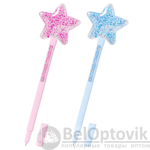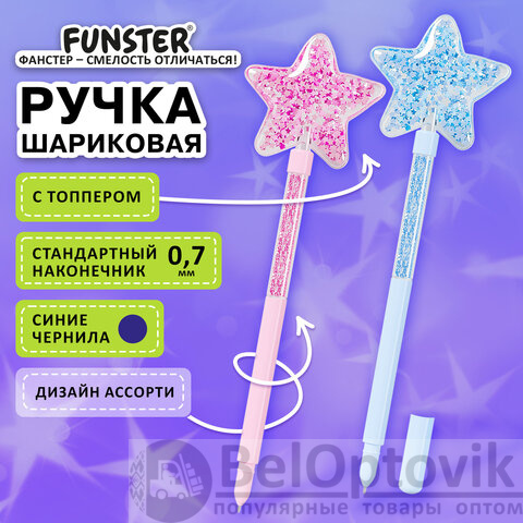 Ручка с топпером с блестками шариковая FUNSTER "MAGIC STAR", СИНЯЯ, ассорти, пишущий узел 0,7 мм, линия письма 0,35 мм, 144379