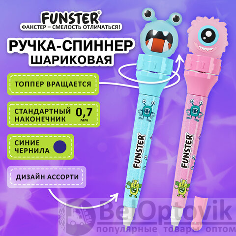 Ручка-спиннер с топпером FUNSTER "MONSTERS" – аксессуар, который точно обратит на себе внимание и вызовет неподдельный интерес! Порадуйте себя и своего ребенка ручками FUNSTER!