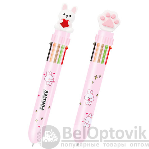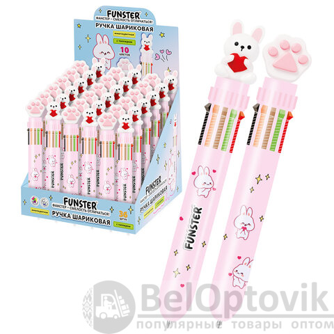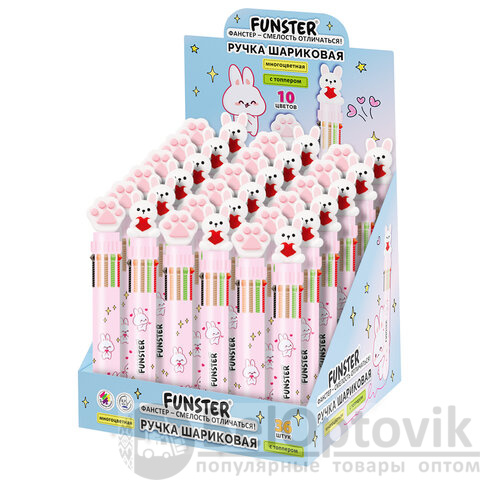 Ручка многоцветная с топпером шариковая автоматическая 10 ЦВЕТОВ FUNSTER "WOW", ассорти, пишущий узел 0,7 мм, линия письма 0,35 мм, 144382