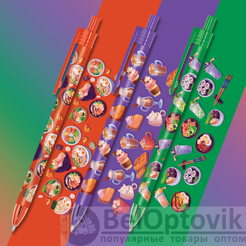Ручка шариковая автоматическая FUNSTER "TASTY FOOD" – яркий и надежный пишущий инструмент для ежедневного использования. Ручка перенесет важные заметки на бумагу, а красочный дизайн с аппетитными блюдами вдохновит на новые идеи.
