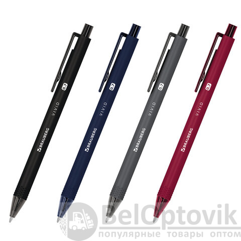 Автоматическая шариковая ручка BRAUBERG "VIVID" обладает soft-touch покрытием и стильным дизайном корпуса в темных оттенках.