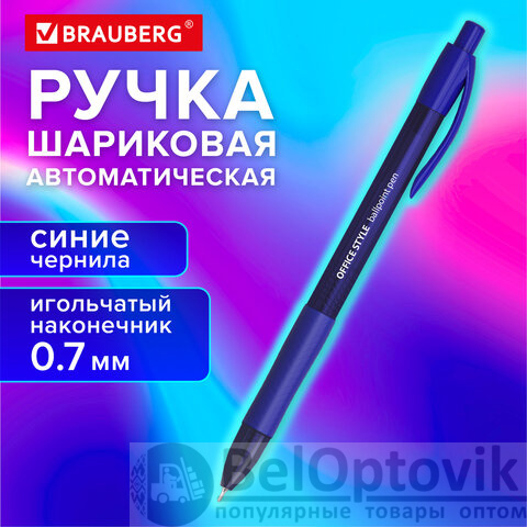 Ручка шариковая автоматическая с грипом BRAUBERG "OFFICE STYLE", СИНЯЯ, пишущий узел 0,7 мм, линия письма 0,35 мм, 144493