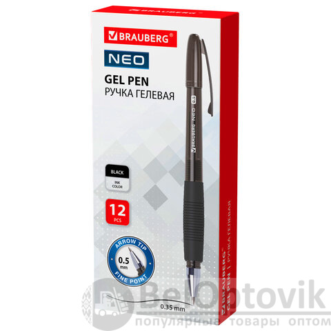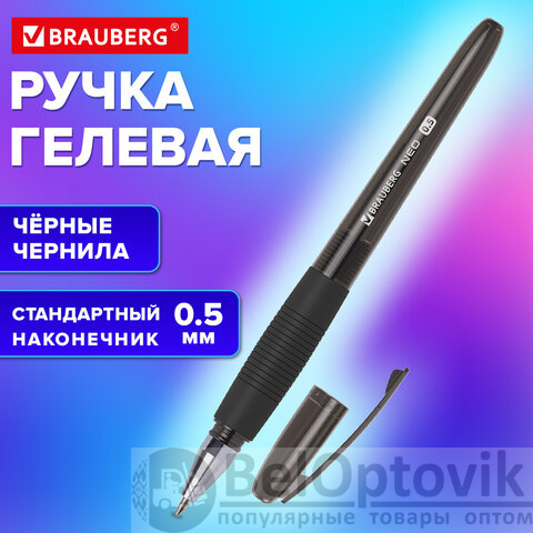 Ручка гелевая с грипом BRAUBERG "NEO", ЧЕРНАЯ, пишущий узел 0,5 мм, линия письма 0,35 мм, 144537
