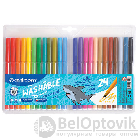 Фломастеры 24 ЦВЕТА CENTROPEN "Washable", смываемые, вентилируемый колпачок, 7790/24TP, 777902485