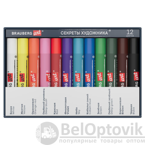 Пастель масляная художественная BRAUBERG ART "Секреты художника", 12 цветов, круглое сечение, 182095