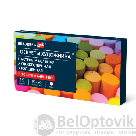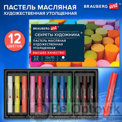 Пастель масляная BRAUBERG ART "Секреты художника", УТОЛЩЕННАЯ, 12 цветов, круглое сечение, 182099