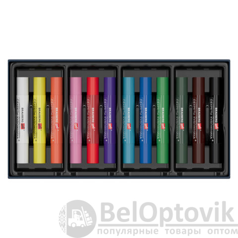 Масляная пастель легко ложится на различные фактуры цветной бумаги, бумагу для рисования, холст, картон, дерево, керамику. 12 цветов позволяют передать полную цветовую палитру. Высокое качество пигментов и связующего обеспечивает низкий расход материала, хорошую укрывистость и яркость цвета. Пастель имеет вид брусков с круглым сечением, обёрнутых в бумажную обёртку. Она позволяет сохранять руки и одежду чистыми. Не токсична и безопасна при использовании. Благодаря компактной упаковке удобно брать с собой.