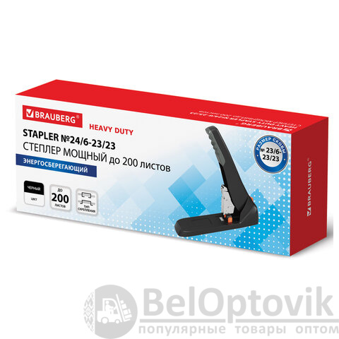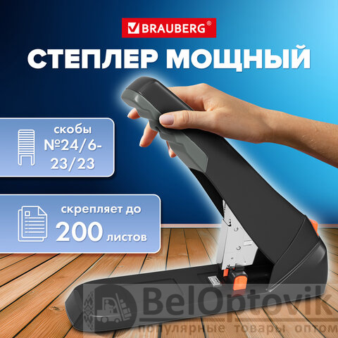 Степлер ЭНЕРГОСБЕРЕГАЮЩИЙ МОЩНЫЙ №23/6-23/23 BRAUBERG "Easy Press", до 200 листов БЕЗ УСИЛИЙ, 273957