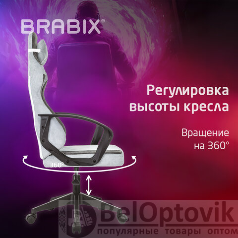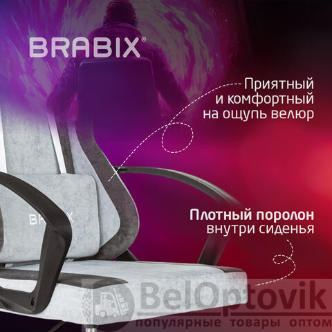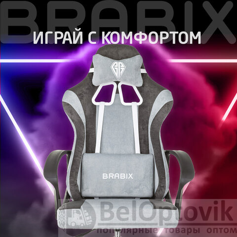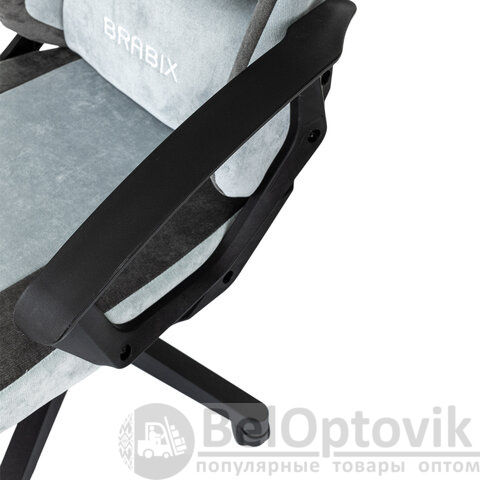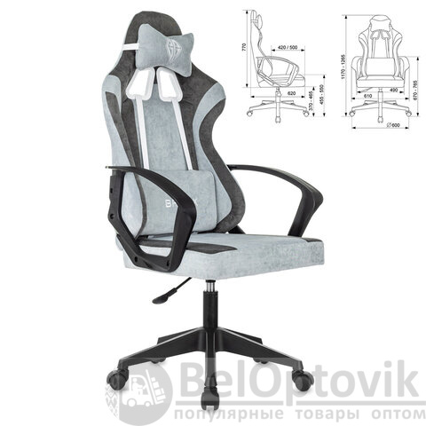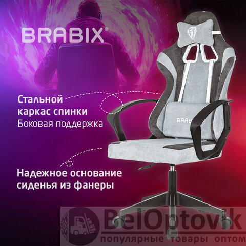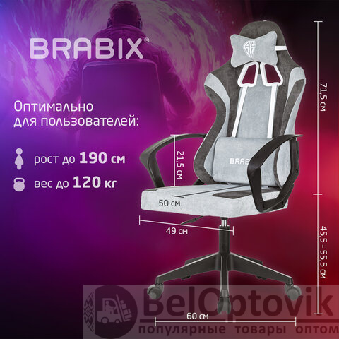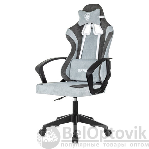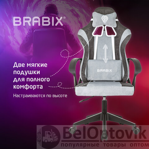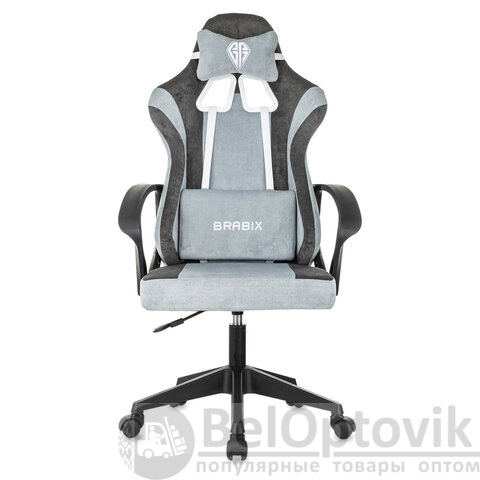 Кресло компьютерное BRABIX "Forcer GM-127", 2 подушки, ткань, серое/светло-голубое, 533214
