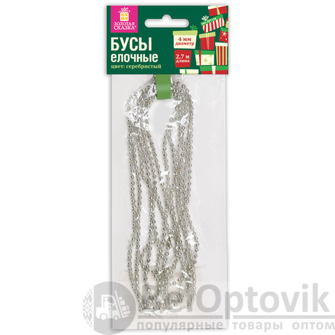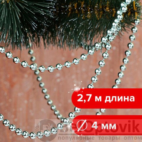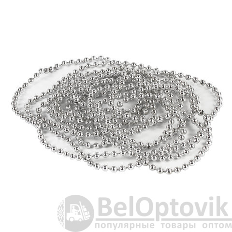 Бусы елочные ЗОЛОТАЯ СКАЗКА, диаметр 4 мм, длина 2,7 м, серебристые, 591138