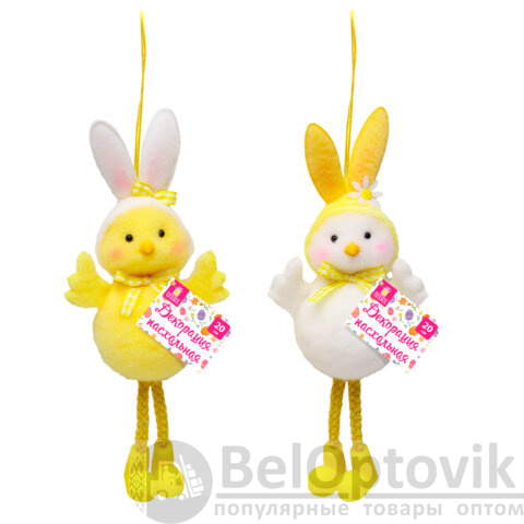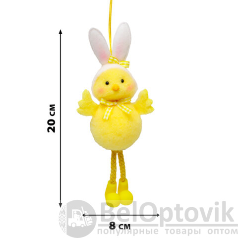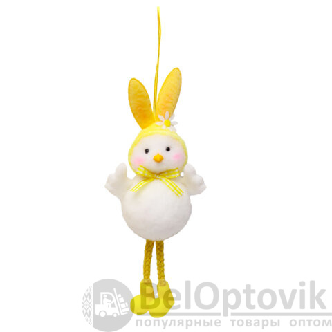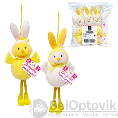 Необычный и невероятно милый пасхальный цыплёнок в забавной шапочке с кроличьими ушками. Декорация выполнена из полиэстера, украшена яркими деталями и представлена в двух дизайнах (без возможности выбора). Благодаря удобной верёвочке, декорацию легко подвесить для украшения интерьера.