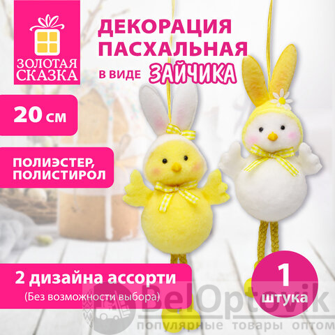 Декорация пасхальная (1 шт.) 20 см "Зайчик", полиэстер, 2 дизайна ассорти, ЗОЛОТАЯ СКАЗКА, 592637