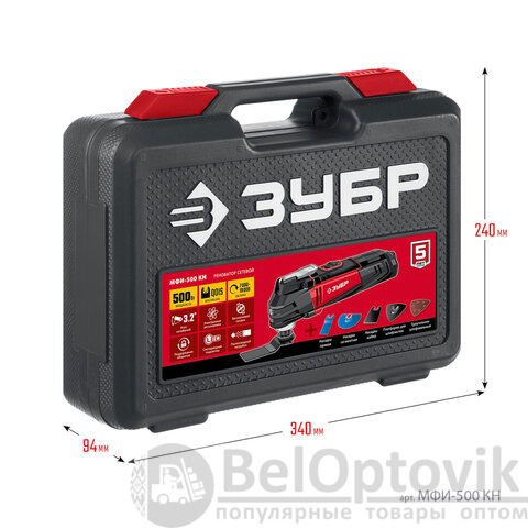 Многофункциональный инструмент (реноватор), 500 Вт, 19000 кол/мин, OQIS, набор насад ЗУБР МФИ-500 КН