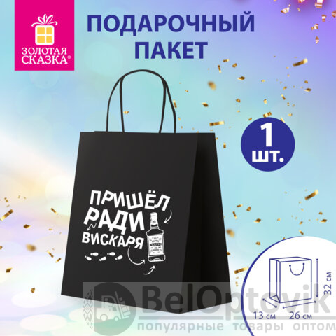 Подарочный пакет "Пришел ради вискаря!" ЗОЛОТАЯ СКАЗКА – отличное решение для упаковки любого презента, которое позволит с легкостью и со вкусом оформить выбранный подарок.