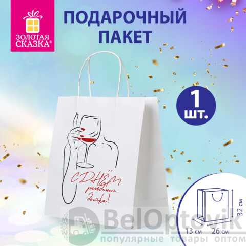 Подарочный пакет "С днём рождения, детка!" ЗОЛОТАЯ СКАЗКА – отличное решение для упаковки любого презента, которое позволит с легкостью и со вкусом оформить выбранный подарок.