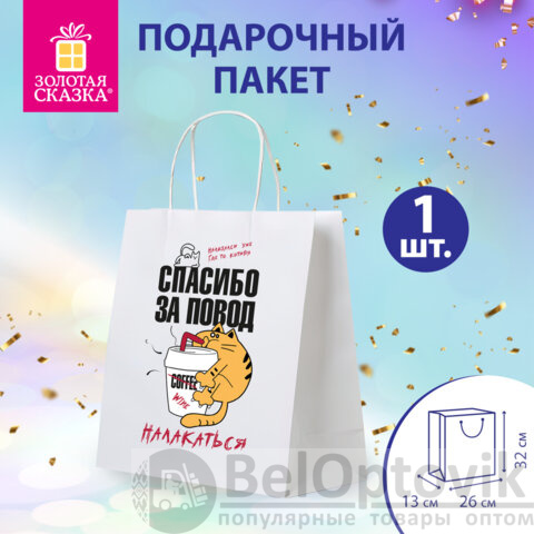 Не упустите возможность сделать ваш подарок по-настоящему особенным! Подарочный пакет – это не просто упаковка, это ваш вклад в создание незабываемых воспоминаний! Дарите эмоции вместе с брендом ЗОЛОТАЯ СКАЗКА!