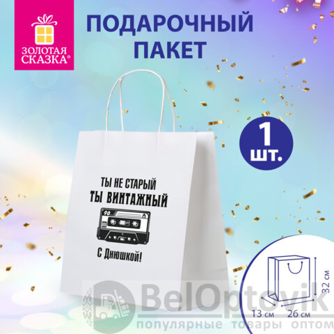 Подарочный пакет "Винтажный" ЗОЛОТАЯ СКАЗКА – отличное решение для упаковки любого презента, которое позволит с легкостью и со вкусом оформить выбранный подарок.