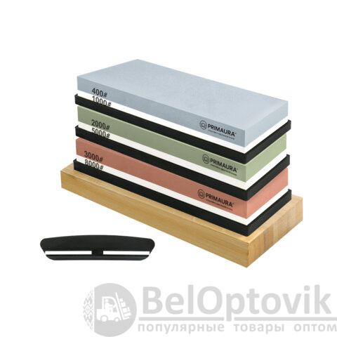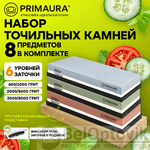 Точильный камень водный, КОМПЛЕКТ 3 шт., НАБОР 8 предметов, 400/1000/2000/3000/5000/8000 грит, PRIMAURA (ПРИМАУРА), 701629