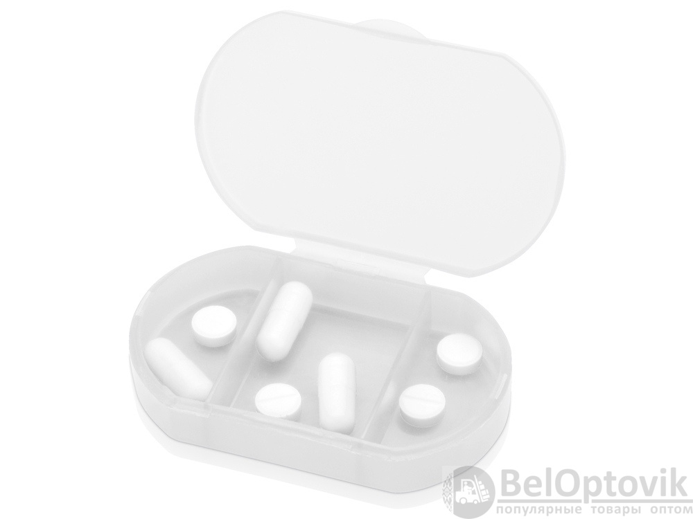 Компактная таблетница выполнена из прочного полупрозрачного пластика, имеет три отделения.