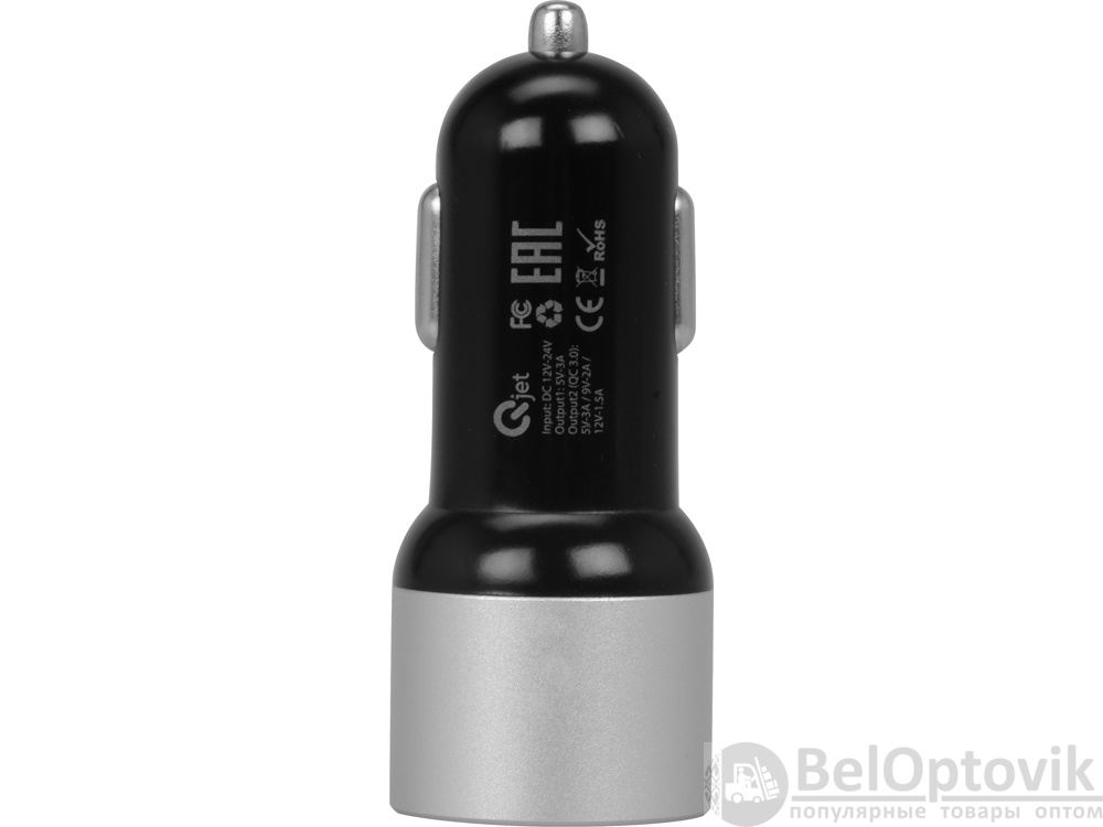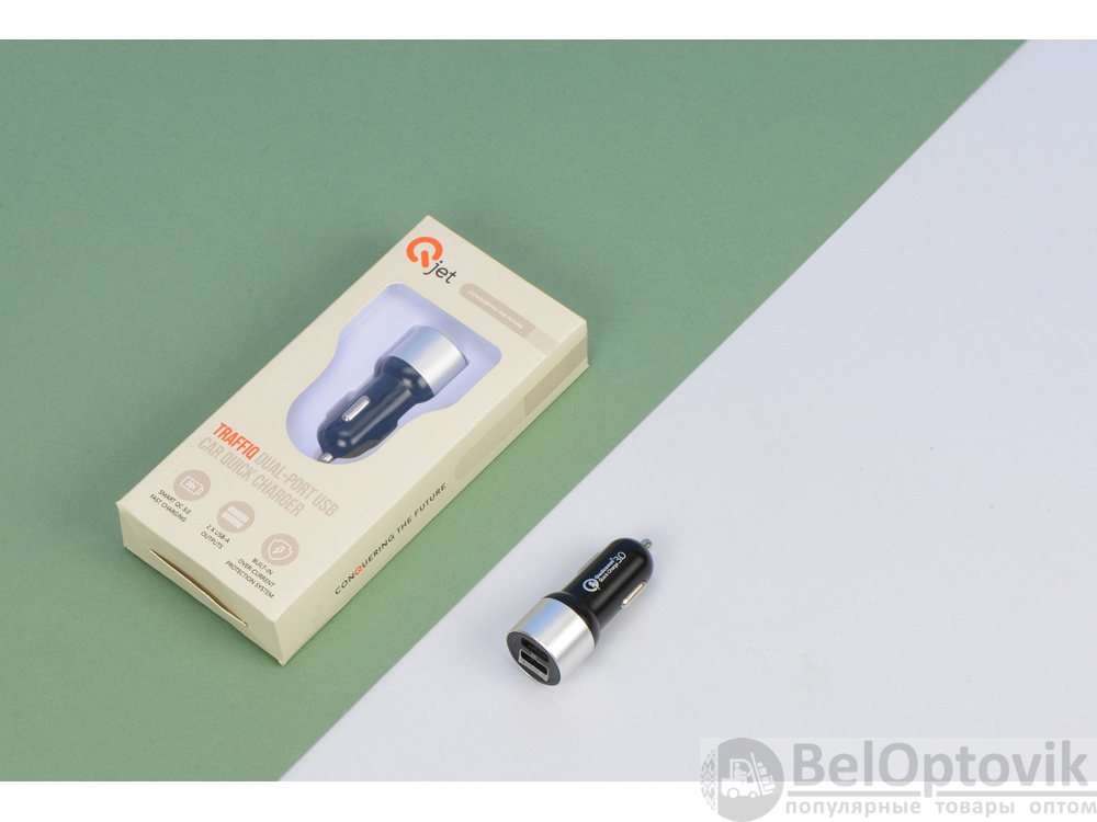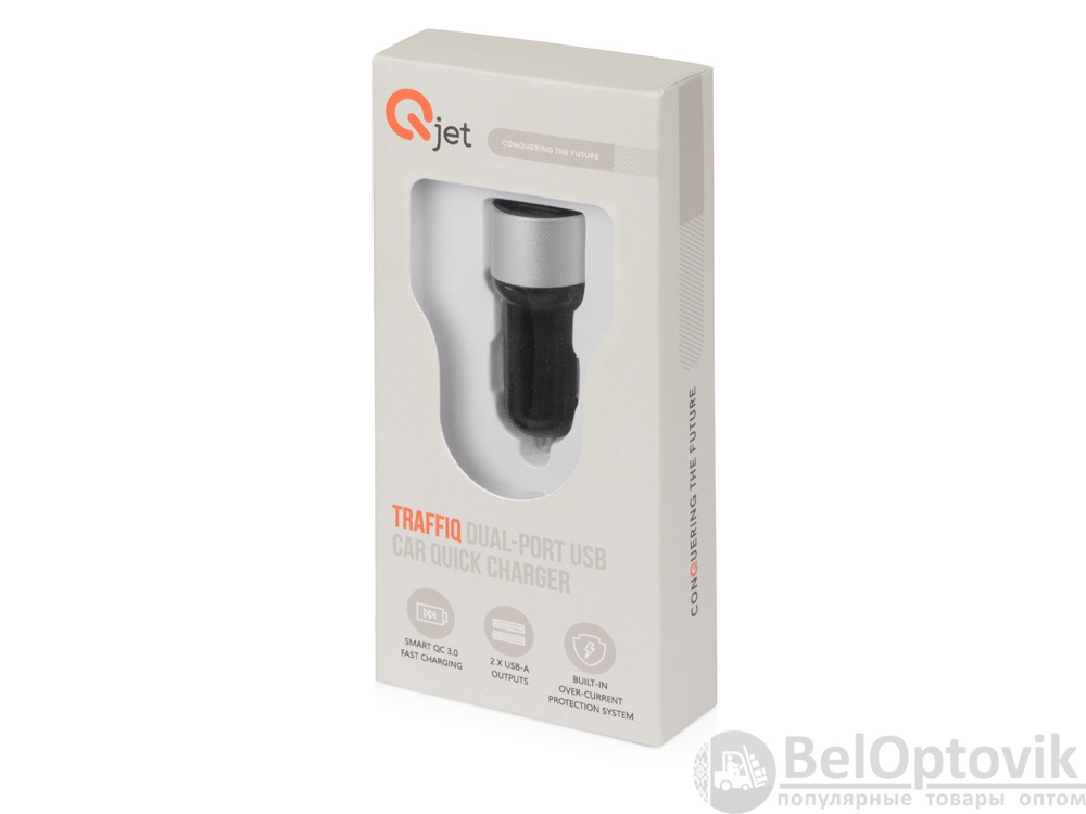 Адаптер автомобильный USB с функцией быстрой зарядки QC 3.0 «TraffIQ», Цвет черный/серебристый