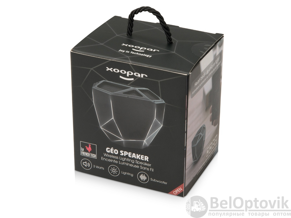 Беспроводной портативный динамик «Geo» — ультрасовременное решение для прослушивания аудио с функцией расширенных басов. Дизайн колонки выполнен в стиле low-poly, главная особенность которого — необычная геометрия форм. Визуальный эффект усиливается одноцветной подсветкой колонки, яркость которой меняется в зависимости от интенсивности звука.