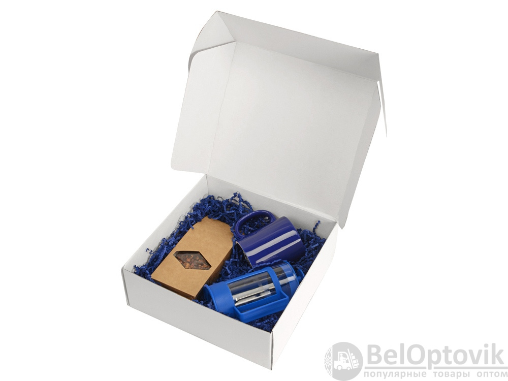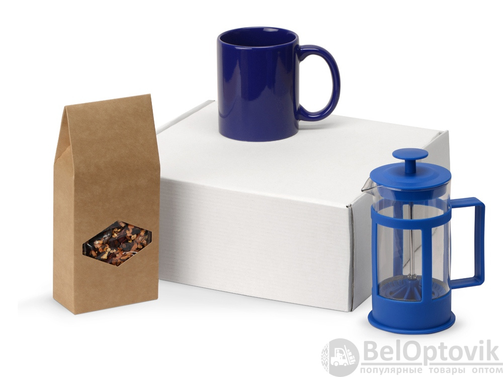 Подарочный набор с чаем, кружкой и френч-прессом «Чаепитие», Цвет кружка- ярко-синий, френч-пресс- синий/прозрачный