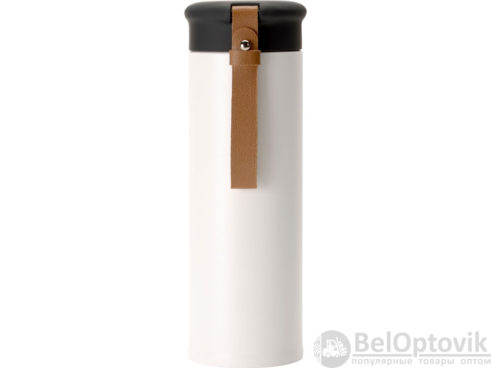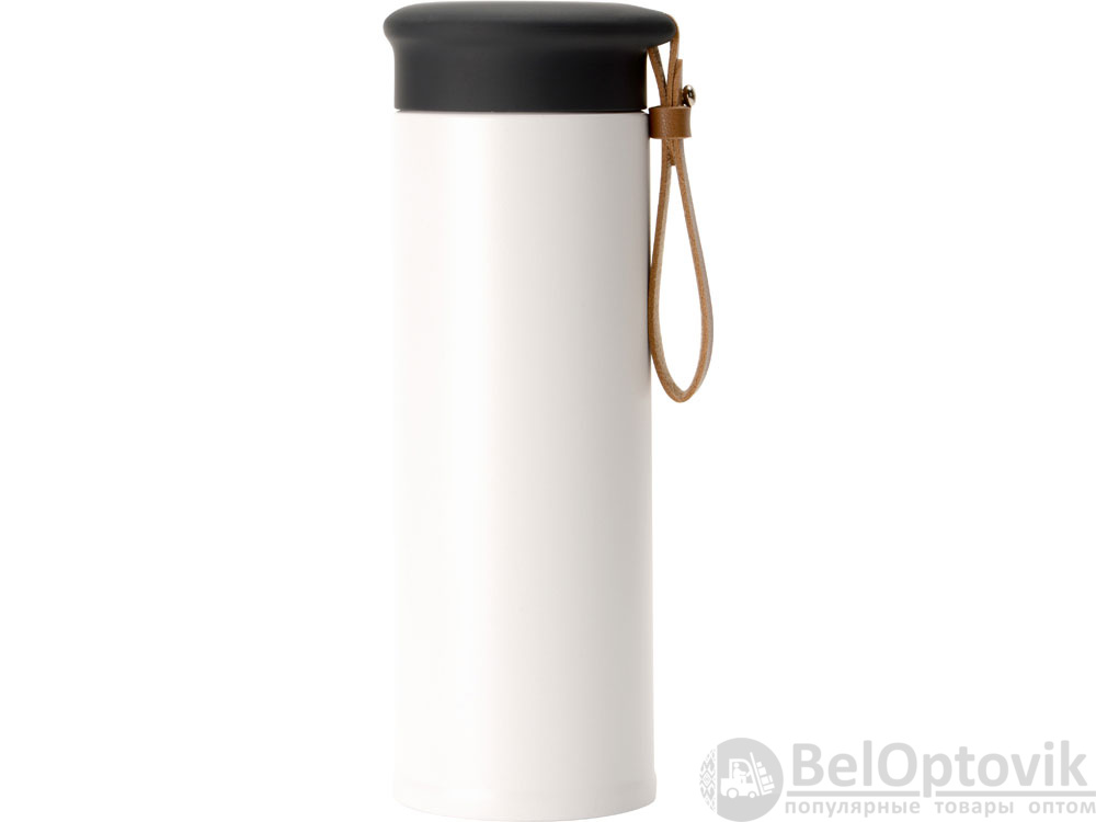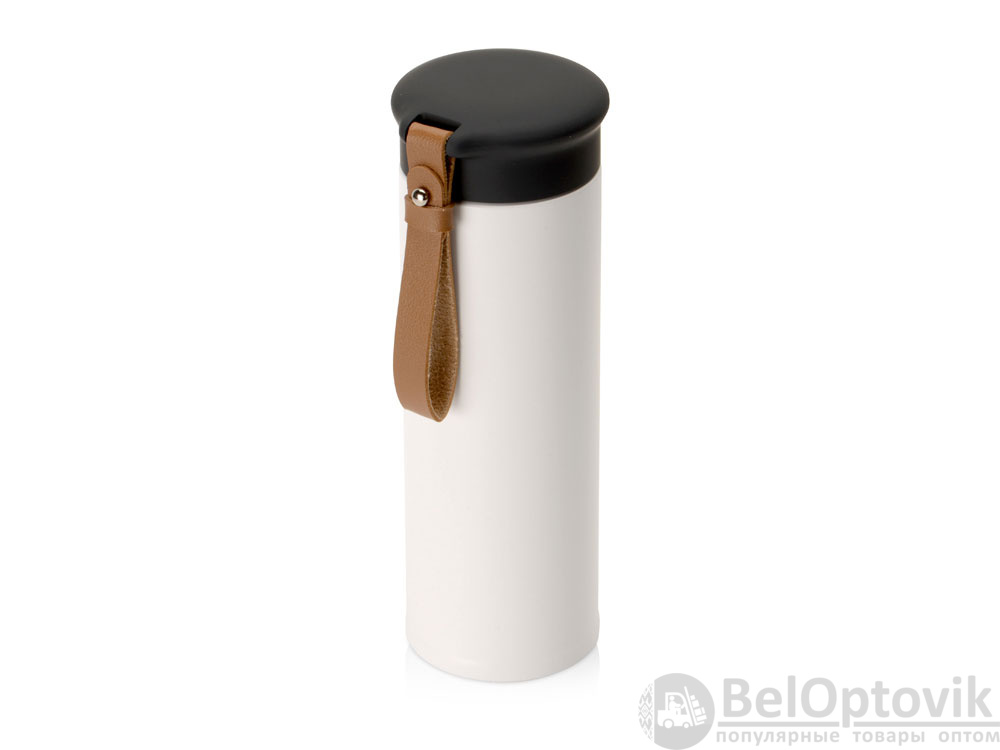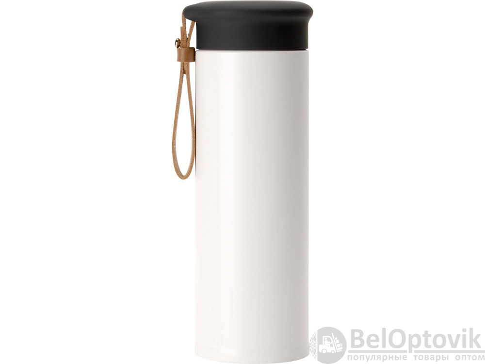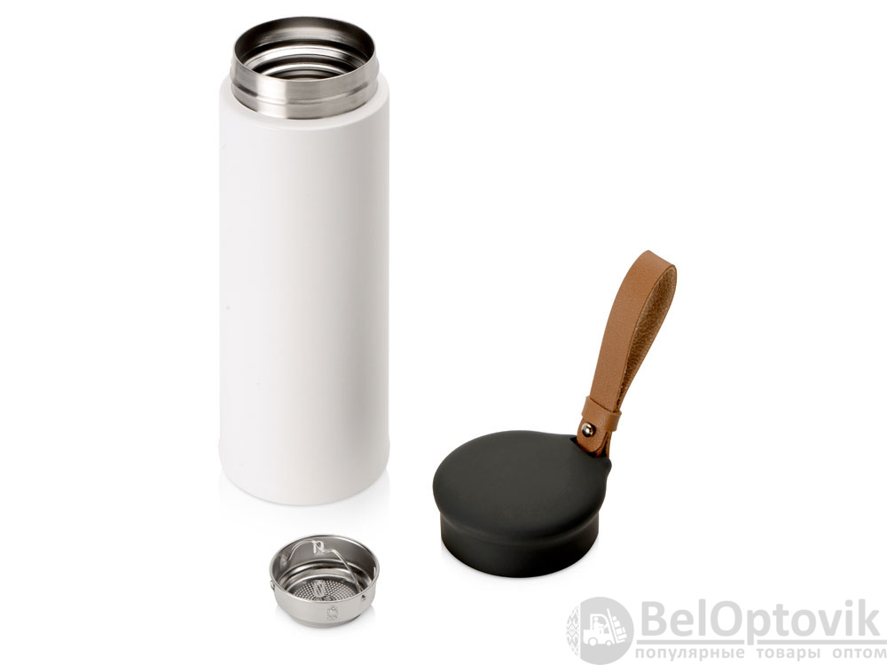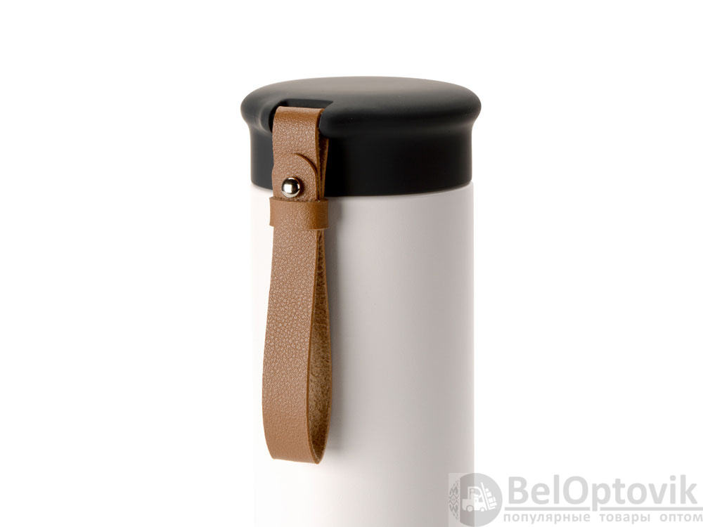Термос герметично завинчивается на крышку, оснащенную съемным ремешком из качественной ПУ кожи. Крышка имеет прорезиненное покрытие, что создает интересное сочетание текстур в рамках одной модели. Корпус имеет элегантную рельефную поверхность с антискользящим эффектом.