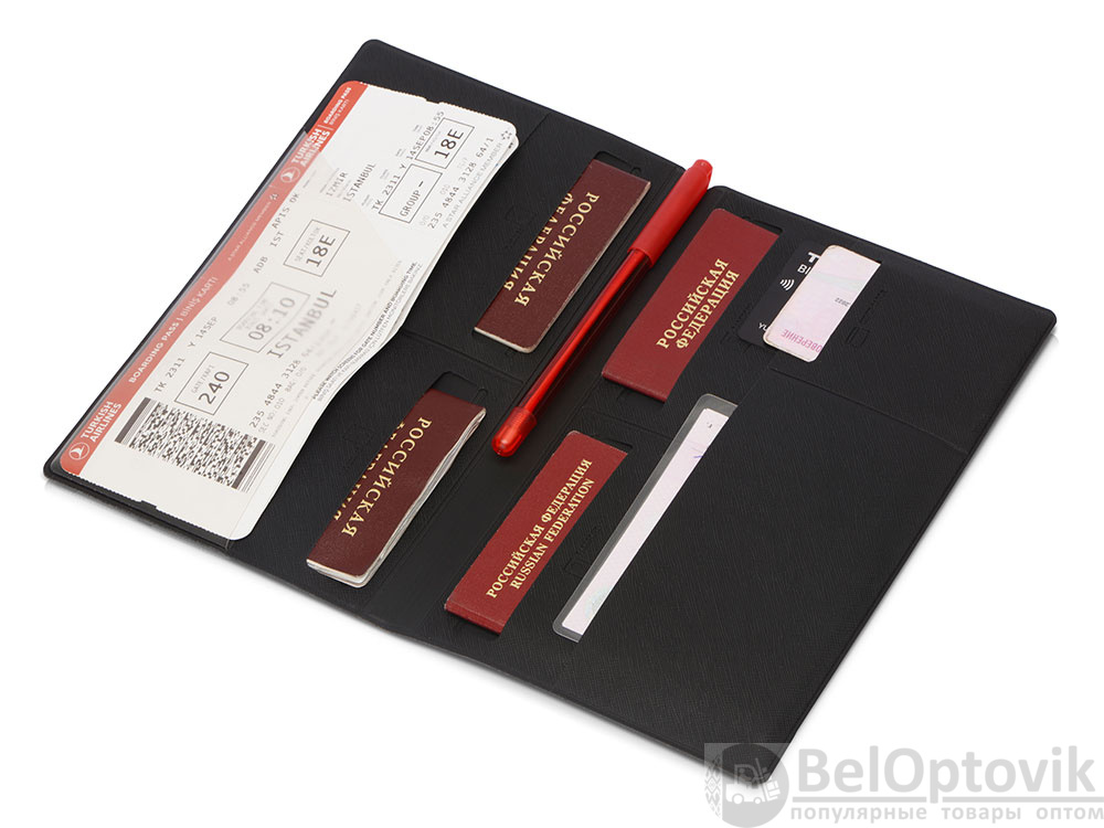 Внутри имеется восемь карманов, которые позволяют вместить документы для семьи из четырех человек. Документы аккуратно разложены и не утратят свою форму. Благодаря своим преимуществам органайзер для путешествий становится не только отменным подарком, но и эффективным рекламным средством.