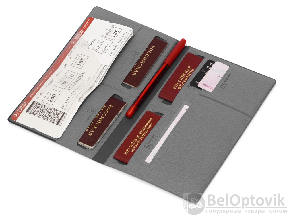 Внутри имеется восемь карманов, которые позволяют вместить документы для семьи из четырех человек. Документы аккуратно разложены и не утратят свою форму. Благодаря своим преимуществам органайзер для путешествий становится не только отменным подарком, но и эффективным рекламным средством.