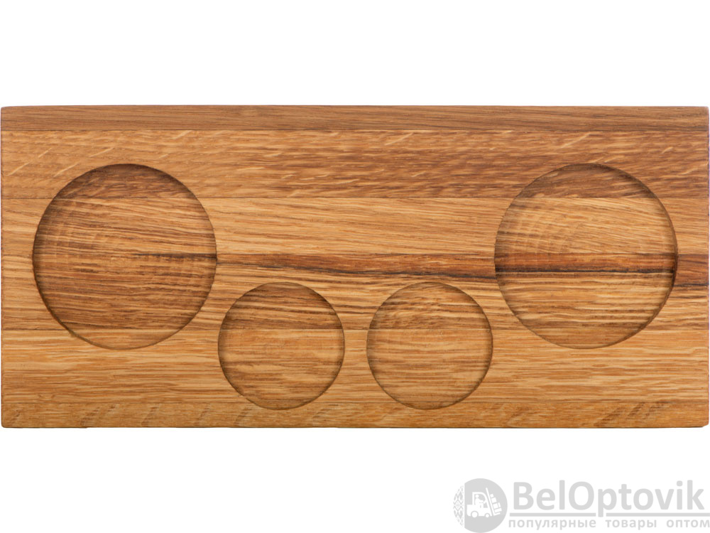 Для сервировки в набор входит дубовый поднос с выемками под бокалы и шайбы.